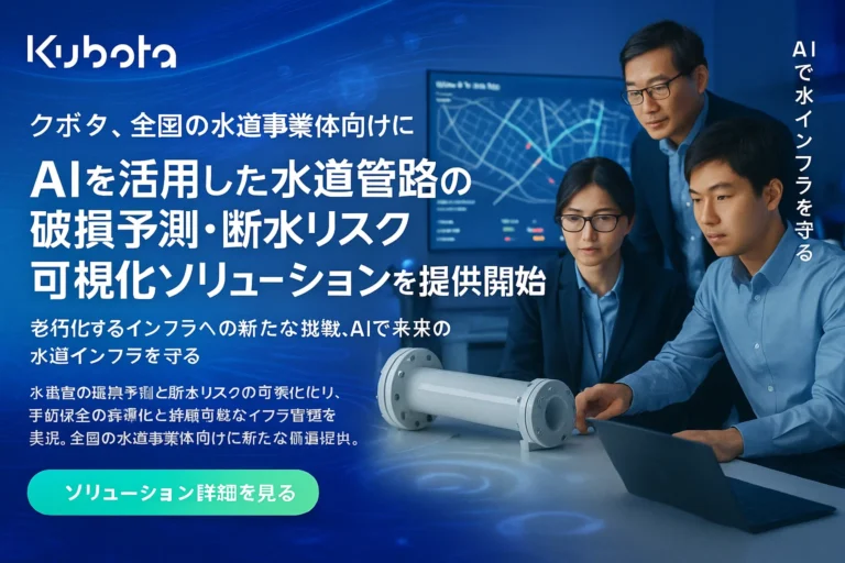 クボタ、全国の水道事業体向けにAIを活用した水道管路の破損予測・断水リスク可視化ソリューションを提供開始