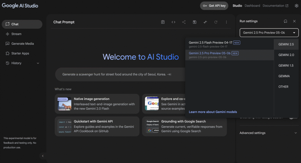 WebブラウザでGoogleの「AI Studio」にアクセスしてログインすれば、その場でGemini 2.5 Proと会話できます。